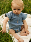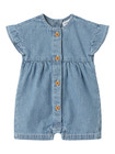 Jade Denim Short heldragt fra NAME IT er lavet i blød bomuld, som er behagelig for dit barn at have på. Den har fine knapper foran, korte ærmer og et sødt denim-look. Perfekt til varme dage og leg.