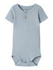 Kortærmet rib-body. Den er fremstillet i en blanding af bomuld, modal og elastan, som tilsammen givet et blødt og behageligt materiale samtidig med en fantastisk pasform. Name It Kab fås i et væld af forskellige farver, som kan matches på kryds og tværs.