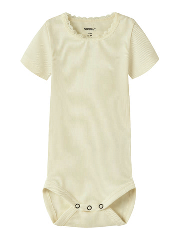 Kab Kortærmet Body fra NAME IT er lavet af blød, økologisk bomuld, som er skånsom mod barnets hud. Perfekt til både leg og hvile.