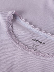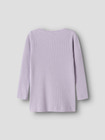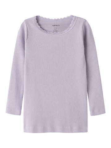 Sød langærmet bluse i rib med en lille blondekant i halsen. Blusen er fremstillet af en blanding af økologisk bomuld og modal, som tilsammen givet et blødt og behageligt materiale samtidig med en fantastisk pasform.