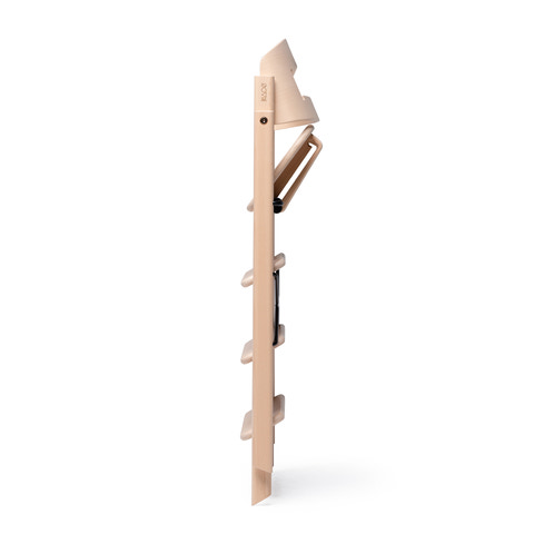KAOS Klapp er designet til ikke at blive justeret. Det eliminerer risikoen for forkert justering og tilskynder børn til naturligt at tilpasse sig til nye siddepositioner, hvilket fremmer optimal blodcirkulation og aktiv siddestilling. Dette understøttes yderligere af de faste trin, som giver fremragende balance og fodstøtte, samt et dobbelt, buet ryglæn designet for at sikre optimal ergonomi og støtte uden at belaste barnets ryg.
