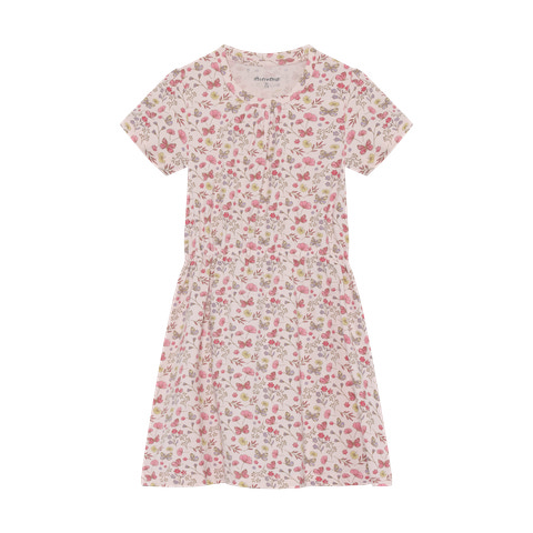 kundeservice@pixizoo.dkKjole m. Print - Raindrops on Roses fra Minymo er en yndig og komfortabel kjole, der passer perfekt til både hverdag og festlige lejligheder. Kjolen har et charmerende blomsterprint i lyserøde og grønne nuancer, som giver et frisk og sommerligt udtryk. Den bløde kvalitet sikrer, at barnet kan bevæge sig frit og lege hele dagen, mens elastikken i taljen giver en flot og feminin silhuet. De korte ærmer og den lette pasform gør kjolen ideel til varme dage, og den kan nemt styles med strømpebukser eller leggings på køligere dage. Kjolen er nem at tage af og på, hvilket gør den praktisk i en travl hverdag. Perfekt til både børnehave, skole og familiefester - denne kjole bliver hurtigt en favorit i garderoben!