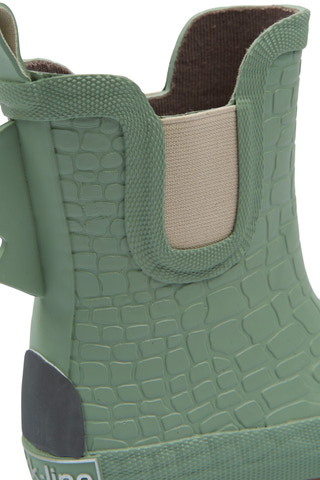 Kort gummistøvle fra Mikk-Line med sjovt 3D Dino-design i grøn. Perfekt til børn, der elsker dinosaurer! Gummistøvlen er vandtæt, har skridsikker sål og er nem at tage af og på. Ideel til leg i regnvejr og udendørs eventyr.