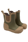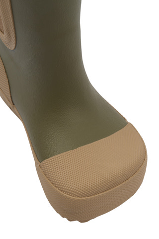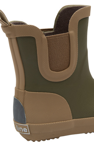Kort gummistøvle fra Mikk-Line i farven Dusty Olive. Barefoot-design giver fri bevægelse og naturlig komfort for små fødder. Perfekt til leg i regnvejr og vandpytter. Nem at tage af og på med elastik i siderne.
