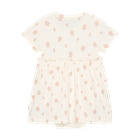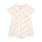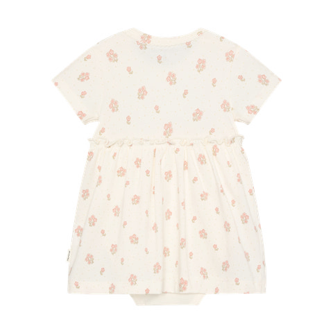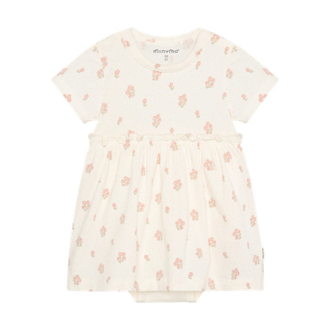 Kortærmet Bodykjole m. Print - Vanilla Ice fra Minymo er den perfekte løsning til små, der både skal være komfortable og se fine ud. Kjolen har et yndigt all-over blomsterprint på en blød, vaniljehvid baggrund, som giver et frisk og sommerligt udtryk. Den smarte bodykjole kombinerer det bedste fra to verdener: en klassisk body med trykknapper forneden, der gør det nemt at skifte ble, og en flot kjole med vidde, der giver et sødt look. De korte ærmer og det lette materiale sikrer, at barnet har det behageligt, selv på varme dage. Kjolen er designet med fokus på både funktionalitet og stil, så den er ideel til både hverdag og festlige lejligheder.