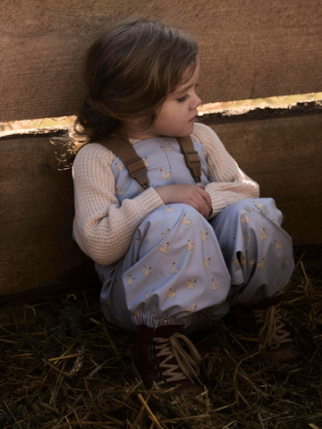 Ladry10 Regnsæt m. Print fra Lil' Atelier er det perfekte valg til de små, der elsker at lege ude – uanset vejret. Regnsættet består af en jakke og bukser, begge dekoreret med et charmerende print, der gør det ekstra sjovt at tage på. Jakken har en aftagelig hætte, som giver fleksibilitet og ekstra beskyttelse, når det regner. De rummelige lommer på jakken er ideelle til små skatte, og elastik ved håndled og bukseben sikrer, at regnen holdes ude. Bukserne har justerbare fodstropper, så de bliver siddende, selv når barnet er aktiv. Materialet er både vandtæt og vindtæt, hvilket gør sættet velegnet til både regnfulde og blæsende dage. Regnsættet er let og behageligt, så barnet kan bevæge sig frit og lege uden begrænsninger. Det er nemt at rengøre og holder til masser af udendørs eventyr. Med Ladry10 regnsættet er dit barn klar til at udforske naturen – uanset om det er på legepladsen, i skoven eller på vej til børnehave.