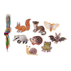Dette fantastiske broderisæt til børn kræver ingen nåle og udløser din fantasi. Brug her fingrene til at føre farverig snor gennem de forstansede huller i otte smukt håndtegnede dyreskabeloner. Dette giver dig mulighed for at skabe smukke mønstre, mens du spiller og træner fleksibilitet.