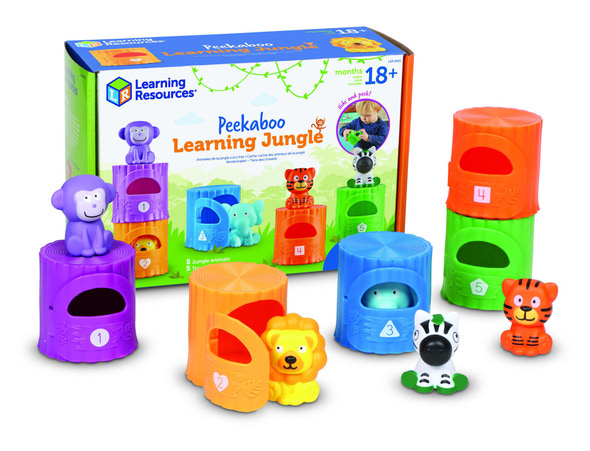 Dette sjove aktivitetssæt hjælper dit barn med at udvikle evner inden for tælling, farvegenkendelse, matchning og sortering – alt sammen gennem leg med fem charmerende jungledyr: abe, løve, elefant, tiger og zebra. Hvert dyr har sit eget farverige træhus, som også kan stables ovenpå hinanden, så legen bliver endnu mere kreativ.