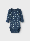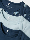 kundeservice@pixizoo.dkGør garderoben komplet med denne fine 3-pak langærmede bodyer fra NAME IT i farven Dark denim. Pakken indeholder tre forskellige designs: én ensfarvet mørkeblå, én med et sødt rumprint og én i en lys blå nuance. Bodyerne er fremstillet i bløde og åndbare materialer, der sikrer maksimal komfort for dit barn hele dagen. De praktiske trykknapper i bunden gør det let at skifte ble, og den elastiske halsudskæring gør påklædningen nem og hurtig. Perfekt til både leg og afslapning, og ideel som basis i enhver babygarderobe.