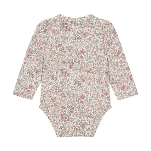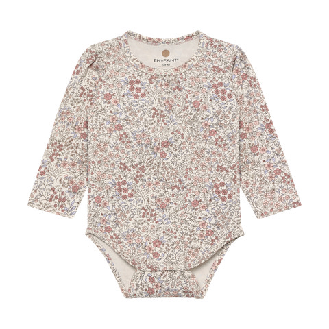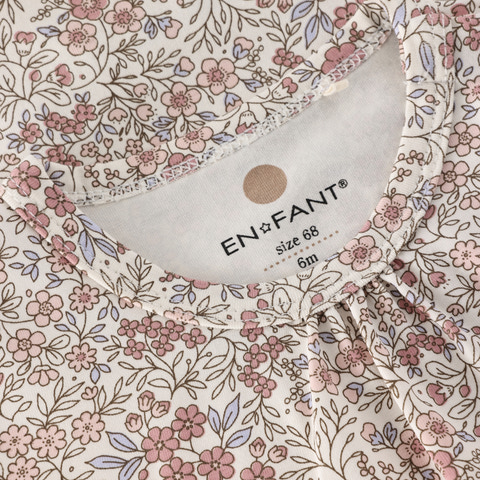 Den langærmede body fra En Fant er et skønt valg til de mindste, der både skal have det behageligt og se fine ud. Bodyen er lavet i et blødt og behageligt materiale, som føles rart mod barnets hud og giver masser af bevægelsesfrihed hele dagen. Det smukke blomstermønster i rolige nuancer giver et charmerende udtryk og gør bodyen nem at sætte sammen med både bukser og leggings.