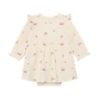 Langærmet Bodykjole fra Fixoni i den fine farve Bleached Mauve er et skønt valg til de mindste. Kjolen har et yndigt sommerfugleprint og søde flæser på skuldrene, som giver et feminint og legende udtryk. Den bløde kvalitet sikrer komfort hele dagen, og den praktiske trykknaplukning i bunden gør det nemt at skifte ble. Bodykjolen kombinerer kjolens søde look med bodyens funktionalitet, så dit barn både ser fint ud og har fri bevægelighed. Perfekt til både hverdag og festlige lejligheder, hvor komfort og stil går hånd i hånd.