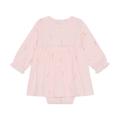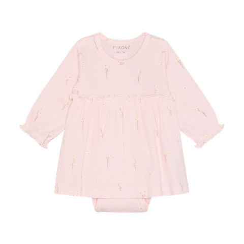 Den langærmede rib body kjole fra Fixoni kombinerer komfort og stil i én og samme løsning. Kjolen er fremstillet i en blød ribkvalitet, der føles behagelig mod barnets hud og giver god bevægelsesfrihed. Det langærmede design gør den ideel til de køligere dage, mens kjolefaconen tilføjer et sødt og feminint udtryk. Praktiske trykknapper i bunden gør det nemt at skifte ble, og den enkle stil gør kjolen velegnet til både hverdag og festlige lejligheder. En skøn basis til garderoben, der kan bruges året rundt.