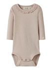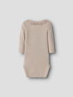 Layo Sup Langærmet Slim Body fra Lil' Atelier er lavet af økologisk bomuld, lyocell og elastan, som gør den blød og strækbar. Den fine Peach Whip farve og den søde krave med flæser gør bodyen ekstra charmerende. Perfekt til både hverdag og fest!