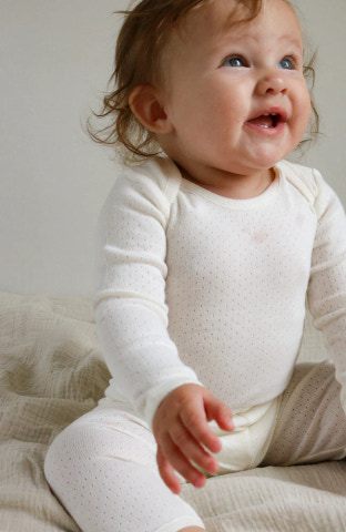 Bløde bomulds leggings til baby imed elastik i livet. 100% økologisk bomuld.