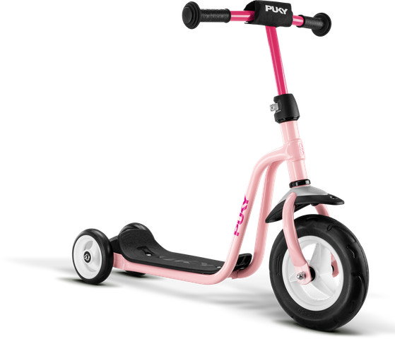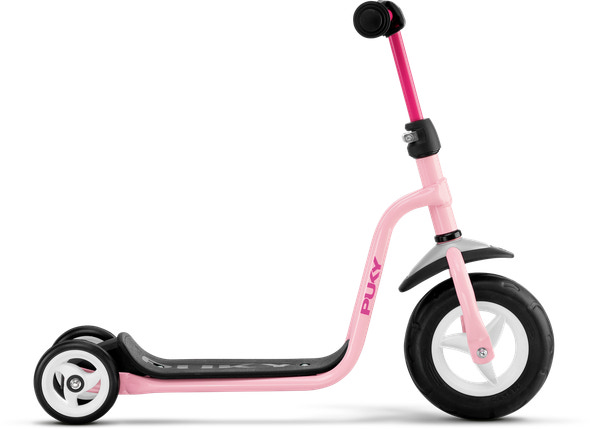 Rigtig godt begynder løbehjul med skumhjul. Det forreste hjul er større end baghjulet, så det er lidt nemmere for de mindste at betjene det og holde balancen.