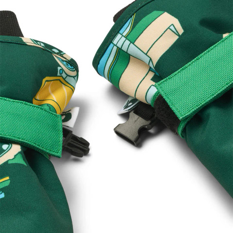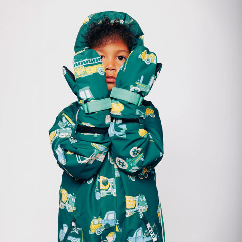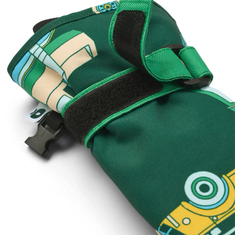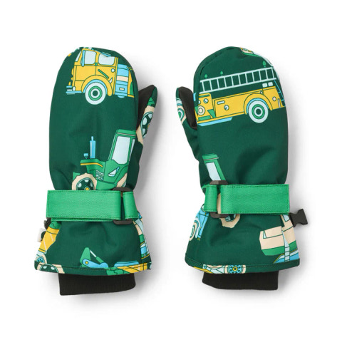 Luffer med køretøjer. Disse luffer har en justerbar velcrostrop ved håndledet og kan klipses sammen med et spænde. Handskerne har slidstærk belægning i i håndfladen og rib ved håndleddene, der forhindre kold vind og sne fra at trænge ind.Modellen på billedet er 110 cm høj og har størrelse M på.Udforsk endeløse eventyr med vores print med en række forskellige køretøjer, fra mægtige maskiner til robuste traktorer.Lufferne har DuPont™ Sorona® insulation, der holder barnet varmt og tørt, og er behandlet med BIONIC-FINISH® ECO, der er en biologisk nedbrydelig overflade behandling. Behandlingen forhindrer fugt i at trænge gennem stoffet, mens overskydende fugt fra kroppen automatisk transporteres til materialets overflade for at fordampe. Behandlingen er fri for fluorstoffer. Lufferne er sne- og vandafvisende, smudsafvisende og vindtætte.Teknisk data: Vandsøjletryk: 10.000 mm. Åndbarhed: 10.000 g/m2/24t. Tapede sømme.Materialesammensætning: 100% polyester.Padding: DuPont™ Sorona®, 100% polyester.Vaskeanvisning: Maskinvask 40°, må ikke bleges, må ikke tørretumbles, må ikke stryges, må ikke renses.
