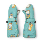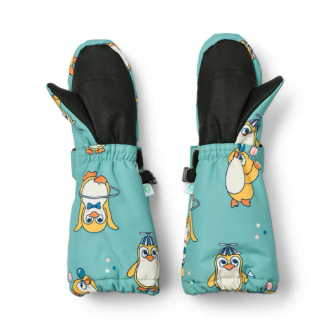 Luffer med pingviner. Disse luffer har en justerbar velcrostrop ved håndledet og kan klipses sammen med et spænde. Handskerne har slidstærk belægning i i håndfladen og et længere skaftestykke ved håndleddene, der forhindre kold vind og sne fra at trænge ind.Modellen er cirka 83 cm lang og har størrelse XS (0-2 år) på.Lad legende cirkuspingviner tilføje et strejf af finurlighed og charme til dit barns overtøj denne vinter.Lufferne har DuPont™ Sorona® insulation, der holder barnet varmt og tørt, og er behandlet med BIONIC-FINISH® ECO, der er en biologisk nedbrydelig overflade behandling. Behandlingen forhindrer fugt i at trænge gennem stoffet, mens overskydende fugt fra kroppen automatisk transporteres til materialets overflade for at fordampe. Behandlingen er fri for fluorstoffer. Lufferne er sne- og vandafvisende, smudsafvisende og vindtætte.Teknisk data: Vandsøjletryk: 10.000 mm. Åndbarhed: 10.000 g/m2/24t. Tapede sømme.Materialesammensætning: 100% polyester.Padding: DuPont™ Sorona®, 100% polyester.Vaskeanvisning: Maskinvask 40°, må ikke bleges, må ikke tørretumbles, må ikke stryges, må ikke renses.