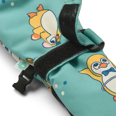 kundeservice@pixizoo.dkLuffer med pingviner. Disse luffer har en justerbar velcrostrop ved håndledet og kan klipses sammen med et spænde. Handskerne har slidstærk belægning i i håndfladen og et længere skaftestykke ved håndleddene, der forhindre kold vind og sne fra at trænge ind.Modellen er cirka 83 cm lang og har størrelse XS (0-2 år) på.Lad legende cirkuspingviner tilføje et strejf af finurlighed og charme til dit barns overtøj denne vinter.Lufferne har DuPont™ Sorona® insulation, der holder barnet varmt og tørt, og er behandlet med BIONIC-FINISH® ECO, der er en biologisk nedbrydelig overflade behandling. Behandlingen forhindrer fugt i at trænge gennem stoffet, mens overskydende fugt fra kroppen automatisk transporteres til materialets overflade for at fordampe. Behandlingen er fri for fluorstoffer. Lufferne er sne- og vandafvisende, smudsafvisende og vindtætte.Teknisk data: Vandsøjletryk: 10.000 mm. Åndbarhed: 10.000 g/m2/24t. Tapede sømme.Materialesammensætning: 100% polyester.Padding: DuPont™ Sorona®, 100% polyester.Vaskeanvisning: Maskinvask 40°, må ikke bleges, må ikke tørretumbles, må ikke stryges, må ikke renses.