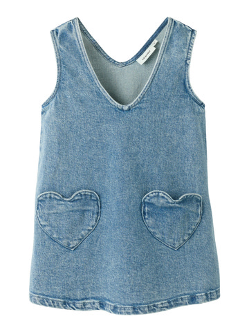 Lulia Denim Spencer från Lil' Atelier är en charmig och mångsidig klänning som passar perfekt både till vardags och fest. Den klassiska spencer-modellen i mellanblå denim har en vacker V-ringning både fram och bak, vilket ger den en modern och feminin look. De två hjärtformade fickorna på framsidan ger en lekfull och söt touch som barn kommer att älska. Materialet är mjukt och slitstarkt, så klänningen tål mycket lek och rörelse. Den är lätt att styla med en T-shirt eller blus under och kan bäras året runt. Lil' Atelier är känt för sina tidlösa och kvalitetsmedvetna designs, och denna spencer är inget undantag.