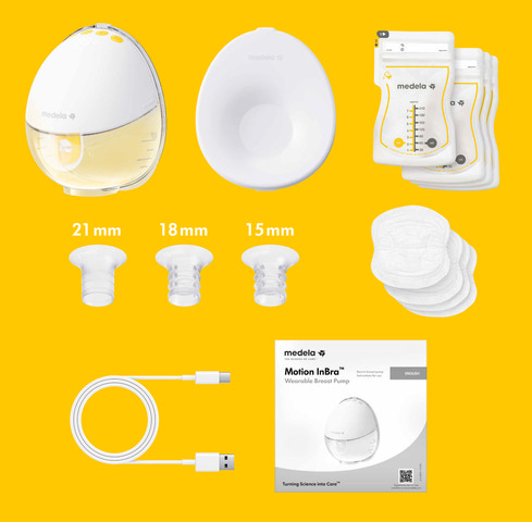 Det innovative og lette kopdesign på Motion InBra er formet efter din krop for at undgå tryk. Den leveres med én brysttragt på 24 mm samt tre ekstra indsatser (15, 18 og 21 mm), som dækker over 95 % af brystvortestørrelser og hjælper dig med at finde den perfekte pasform.