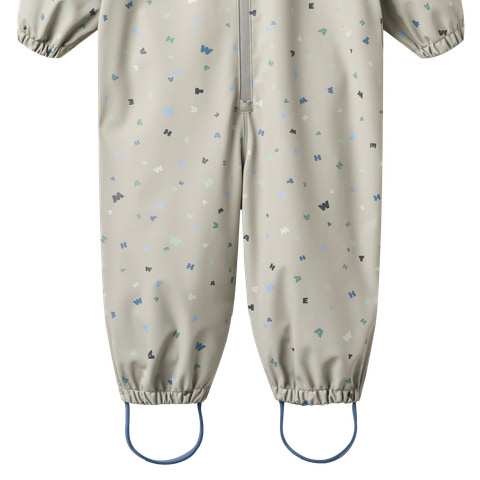 Wheat's praktiske regntøj er en væsentlig del af dit barns garderobe. Det er lavet i et superblødt og let materiale, som gør det behageligt for dit barn at have på og bevæge sig rundt i. Regndragten er vandtæt og smudsafvisende, og den er derfor nem at rengøre med en våd klud. Dragten er perfekt til lange gåture og små besøg på legepladsen i de evigt skiftende sæsoner. Dragten har en lynlås foran med lynlåsgarage, så lynlåsen ikke generer dit barn. Den har en justerbar elastik bagpå samt elastikker omkring håndled og i benene for, at den kan holde vand og andet ude.