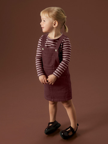 Kjolen har praktiske lommer både foran og bagpå, perfekt til små skatte eller hænder, og en diskret slidfinish, som giver et cool, brugt look uden at gå på kompromis med holdbarheden. Lukningen med trykknapper gør det nemt at tage kjolen af og på.