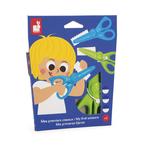 Sættet indeholder tre sjove sakse med dyreinspirerede designs og forskellige klippemønstre: en rund elefantsaks, en zigzag hajsaks og en lige krokodillesaks.