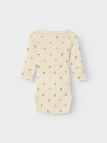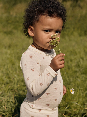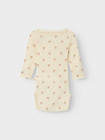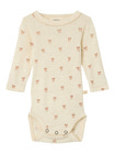 Denne bodysuit har lange ærmer, en klassisk rund hals og praktisk trykknaplukning, der gør påklædningen nem. Det gentagne all-over print og et lille mærke giver et sødt og stilfuldt udtryk, som passer perfekt til både hverdag og hyggestunder.