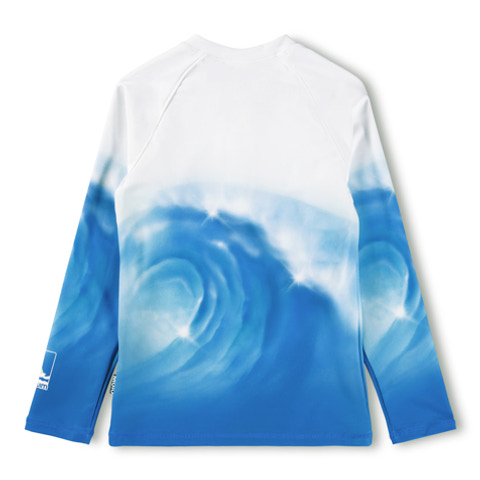 Noble Badetrøje fra Molo beskytter dit barn mod solens stråler, mens de leger i vandet. Lavet af blødt polyester og elastan, som giver god bevægelsesfrihed. Det flotte Air Brush Wave-design gør badetrøjen ekstra sjov og farverig.