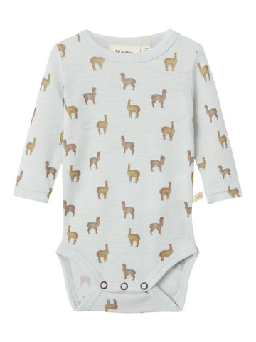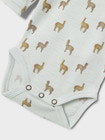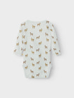 Bodysuiten har lange ærmer, en rund hals og praktisk trykknaplukning for nem påklædning. Det gentagne all-over print giver et stilfuldt og legende udtryk.
