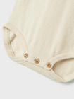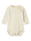 Bodysuiten har lange ærmer, rund hals og praktisk knaplukning for nem påklædning. Et diskret mærke tilføjer et stilrent finish.