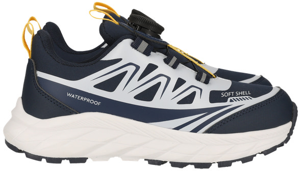 Skoen er udstyret med det smarte Q-lock snøresystem, som gør det hurtigt og enkelt for barnet selv at få skoene af og på – helt uden besvær. Den vandtætte overflade holder fødderne tørre, selv når vejret driller, og den lette, fleksible sål giver både støtte og fri bevægelighed, uanset om barnet leger i skolegården eller er på tur i naturen.