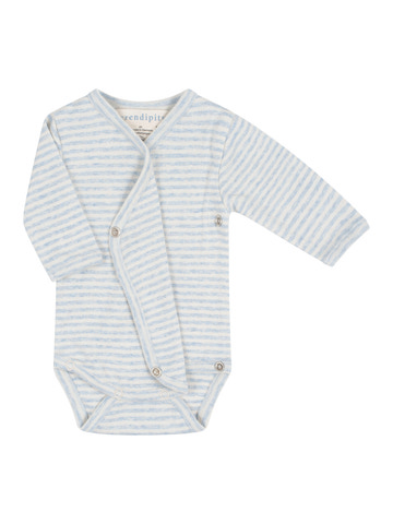 Stribet slå-om body med trykknapper til baby første tid. Smalle striber. Syet af blød økologisk bomulds rib.