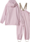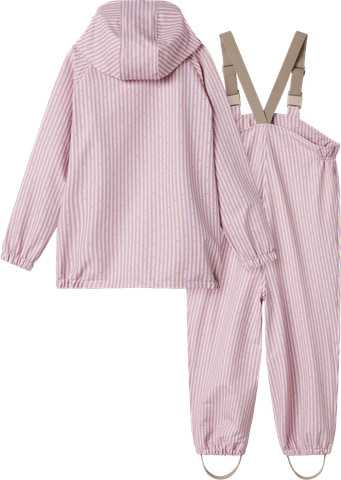 Dette regnsæt til børn er både praktisk og komfortabelt. Regnbukserne er udstyret med seler og elastik i siderne, så de altid sidder godt og sikkert. Jakken har en praktisk forlomme og lukkes med lynlås samt trykknapper for ekstra beskyttelse mod vind og vejr.