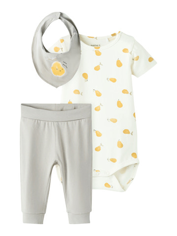 kundeservice@pixizoo.dkOpearry Gavepakke Sæt fra NAME IT er perfekt til de mindste! Sættet består af body, bukser og savlesmæk i blød bomuld med sødt pæremotiv.