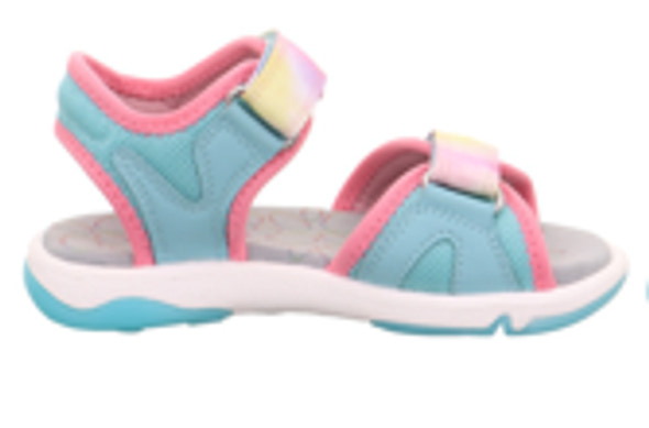 Superfit Pebbles Sandal i lysegrøn/rosa er den perfekte sommersandal til aktive børn. Sandalen er designet med fokus på komfort og bevægelsesfrihed, så små fødder kan lege og udforske hele dagen. De to justerbare velcrolukninger gør det nemt at tilpasse sandalen, så den sidder sikkert og behageligt på foden. Den bløde, stødabsorberende sål giver god støtte, mens det åndbare materiale sikrer, at fødderne holdes kølige selv på varme dage. Det farverige design med søde detaljer gør sandalen ekstra indbydende for børn, der elsker glade farver.