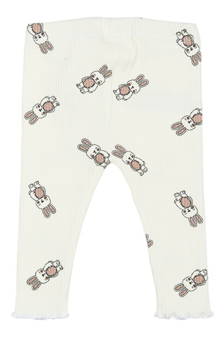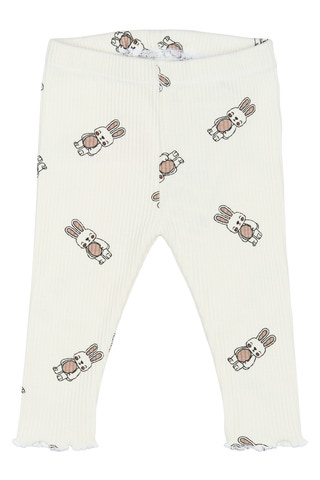 Ribstrikkede baby leggings med et sødt mønster af smilende kaniner og søde blonde-detaljer omkring ben åbningerne. Disse leggings fra THE NEW siblings er nemme at style med forskellige toppe. GOTS Økologisk certificeret af CU842535