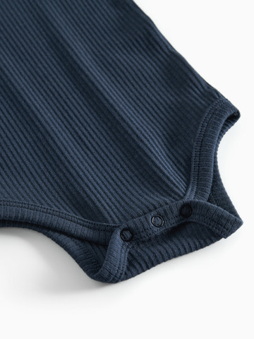 Enkel langærmet bodystocking, der bliver lukket med trykknapper mellem benene for nem bleskiftning. Ribstrikket med elastan