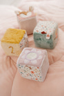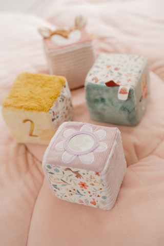 Med forskellige lyde, teksturer og farver at udforske, vil dette søde sæt af bløde aktivitetsterninger fra Fairy Garden-kollektionen holde din lille underholdt i timevis, samtidig med at det fremmer hånd-øje-koordination på en legende måde. Sættet består af 4 plysterninger i smukke farver, hver med et unikt tal. Terningerne er lette at gribe om for små hænder og byder på masser af sjove mærkater, teksturer og et blomsterspejl at udforske
