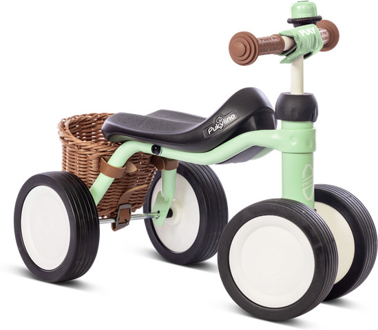 My first Pukelino løbecykel er det perfekte startkøretøj til dit barn. Løbecyklen træner barnets balance, retsningsfornemmelse og motoriske udvikling. Det er en ideel overgangscykel, som forbereder barnet til at skulle over på en tohjulet løbecykel. My first Puky løbecykel anbefales til børn fra 1 år med en kropshøjde på 75 cm. Forudsætningen for, at barnet kan bruge løbecyklen er, at barnet kan stå og gå med hjælp. Cyklen er udstyret med en lav saddel - indstilling, hvilket betyder at på- og afstigning er nemt for barnet. Sædehøjen er 22 cm, og sadlen er ergonomisk udformet. På styret er der sat sikkerhedshåndtag med store baffler, der giver dit barn et sikkert greb om styret, men som også beskytter hænderne. Hjulene er i et fast plast med et flydende gummmiovertræk, der giver et godt greb og er støjsvage, så løbecyklen derfor egner sig helt fint til indendørs brug.