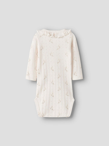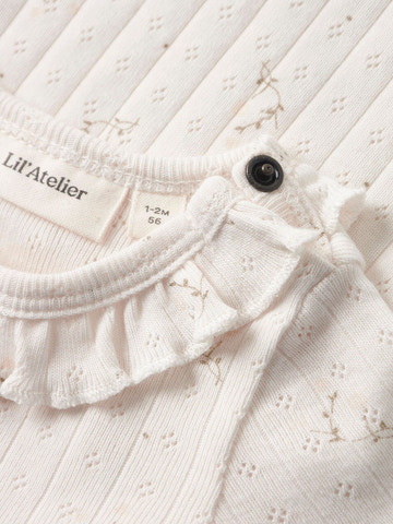 Rachello Ria langærmet body fra Lil' Atelier er lavet i blød modal og økologisk bomuld. Perfekt til sart babyhud og giver god komfort hele dagen. Sødt blomsterprint og fine flæsedetaljer gør den ekstra charmerende.
