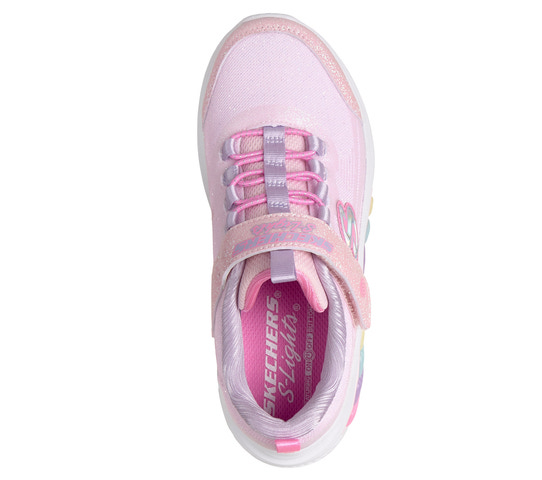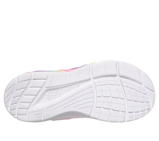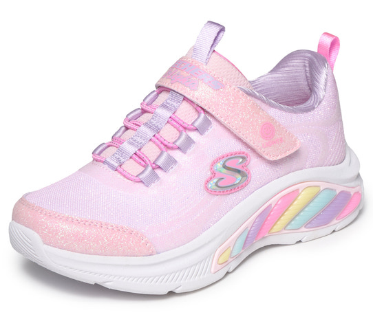 Rainbow Cruisers - Pink fra SKECHERS er farverige og sjove sko til børn! De er lavet i blødt tekstil, har glimmerdetaljer og regnbuefarvet sål. Skoene er lette at tage på med praktisk velcro og elastiksnøre. Perfekte til leg og bevægelse.