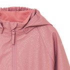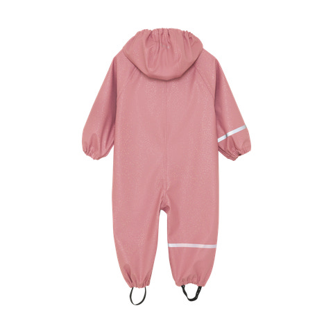 Regndragt i PU fra CeLaVi i et ensfarvet design med flot glitterprint. Dragten har smalle refleksstriber på den ene arm og det ene ben for øget synlighed. Logoet er refleksprintet både øverst på den ene arm og bag på hætten.