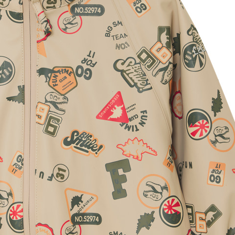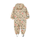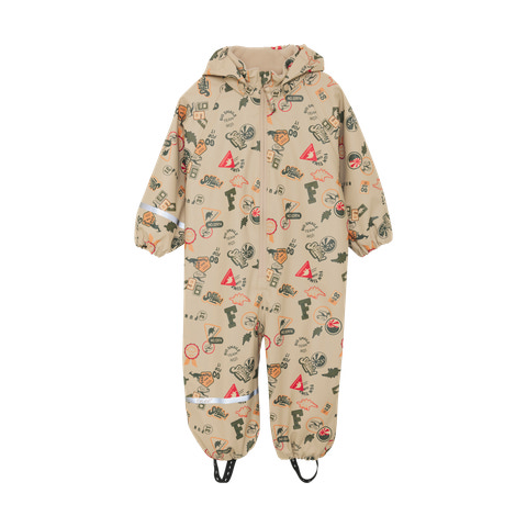 Regndragt i PU fra CeLaVi med et flot all‑over print. Dragten er udstyret med smalle refleksstriber på den ene arm og det ene ben for øget synlighed. Logoet er refleksprintet både øverst på den ene arm og på bagsiden af hætten.