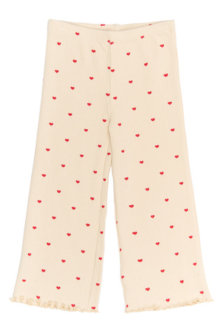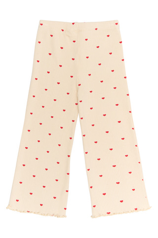 kundeservice@pixizoo.dkDisse brede ribbukser fra THE NEW Siblings kombinerer legende stil med høj komfort – perfekte til hverdagsbrug med et feminint twist. De har et sødt all-over hjerteprint og fine salatkanter ved anklerne, samt en elastisk linning, der sikrer en blød og fleksibel pasform. Style dem med den matchende TNSTRhea Rib Tee for et komplet og koordineret outfit.