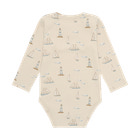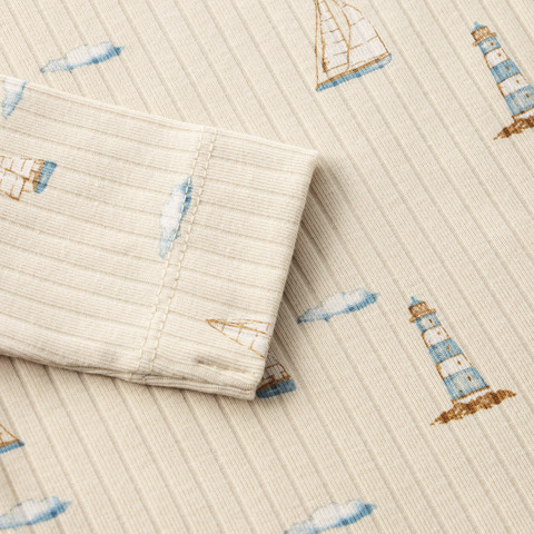 Rib langærmet body med print fra En Fant er et dejligt valg til de mindste og forener blød komfort med et charmerende design. Bodyen er lavet i et blødt ribmateriale, der føles behageligt mod huden og giver barnet fuld bevægelsesfrihed hele dagen. Det fine maritime print med fyrtårne og både skaber et hyggeligt og legende udtryk, perfekt til både hverdagsbrug og mere festlige lejligheder.