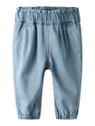 kundeservice@pixizoo.dkRose R Jeans fra NAME IT er et par skønne og komfortable bukser til de mindste. Bukserne er fremstillet i en blød og let denim, der giver masser af bevægelsesfrihed til leg og hverdag. Den elastiske talje og ankler sikrer, at bukserne sidder godt uden at stramme, og gør dem nemme at tage af og på. De praktiske sidelommer tilføjer et smart touch, mens den lyseblå farve passer til det meste i garderoben. Perfekte til både daglig brug og hyggelige stunder.