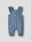 kundeservice@pixizoo.dkSage Denim Overall fra NAME IT er en charmerende og praktisk heldragt til de mindste. Den bløde denim i denim blue er pyntet med fine, broderede blomster, der giver et sødt og legende udtryk. Flæserne på skuldrene tilføjer et feminint touch, mens knaplukningen foran gør det let at tage dragten af og på. Elastikken ved benene sikrer, at overallen sidder godt og komfortabelt, så barnet kan bevæge sig frit. Perfekt til både hverdag og festlige lejligheder, hvor komfort og stil går hånd i hånd.