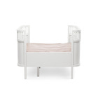 Denne seng er også kendt for at være sengen, der kan vokse med dit barn. Det er den fordi, at du kan bruge den lige fra dit barns fødsel og mange år frem. Du kan tilpasse sengen på mange måder, så den passer det aktuelle behov. Du kan for eksempel nemt hæve og sænke sengens bund, hvilket er smart i dit barns første tid. Ved at hæve bunden gør du det nemmere for dig selv, at række ned efter dit barn, samtidig med, at du skåner din ryg. Derudover kan sengens sider tages af efter behov. Fordelen ved denne seng er, at når dit barn er blevet for stor til sin tremmeseng, skal du ikke ud og finde en ny seng, men blot tage siderne af Sebra sengen, og trække den ud til en juniorseng. Udtrækslængden på sengen er 155 cm. Sebra sengen har smukke afrundede hjørner, og dermed ingen skarpe kanter. Når behovet for hverken baby- eller juniorseng er der, kan du for eksempel tage den ene side af sengen og bruge den som en lille sofa.