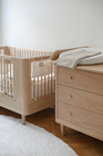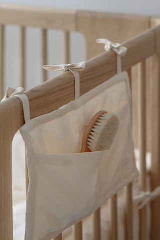 Sengelommen fra We Are Bitte er den perfekte løsning til at holde styr på de små nødvendigheder ved barnets seng. Med denne smarte sengelomme har du altid sut, nusseklud, yndlingsbog eller bamse lige ved hånden - både til natten og de hyggelige puttestunder. Sengelommen bindes nemt fast på tremmesengen, juniorsengen eller endda på siden af puslebordet med de tre fine bindebånd, så den sidder sikkert og stabilt. Det enkle og stilrene design passer ind i enhver indretning og tilfører et roligt, nordisk udtryk. Med flere rummelige lommer får du plads til alt det vigtigste, så du slipper for at lede efter småting i mørket. Mål: ca. 36 x 21 cm.